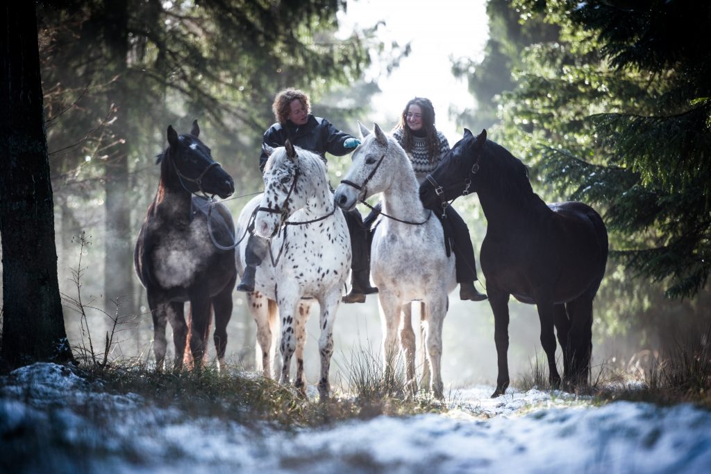 Damit ein Pferd zu einer gelassenen Persönlichkeit mit Humor und Motivation heranreifen kann, benötigt es Raum bis zum Horizont und seinen Platz in einer lebendigen Herdenstruktur. Unsere Pferde leben daher grundsätzlich draußen auf den naturbelassenen Weiden und können bei Bedarf Schutz im Offenstall suchen.Im Winter gibt es die Möglichkeit, die Pferde nachts in Boxen unterzubringen, um eine individuelle Fütterung zu gewährleisten. Die Gruppen werden nach Geschlecht und Futterbedarf zusammengestellt.